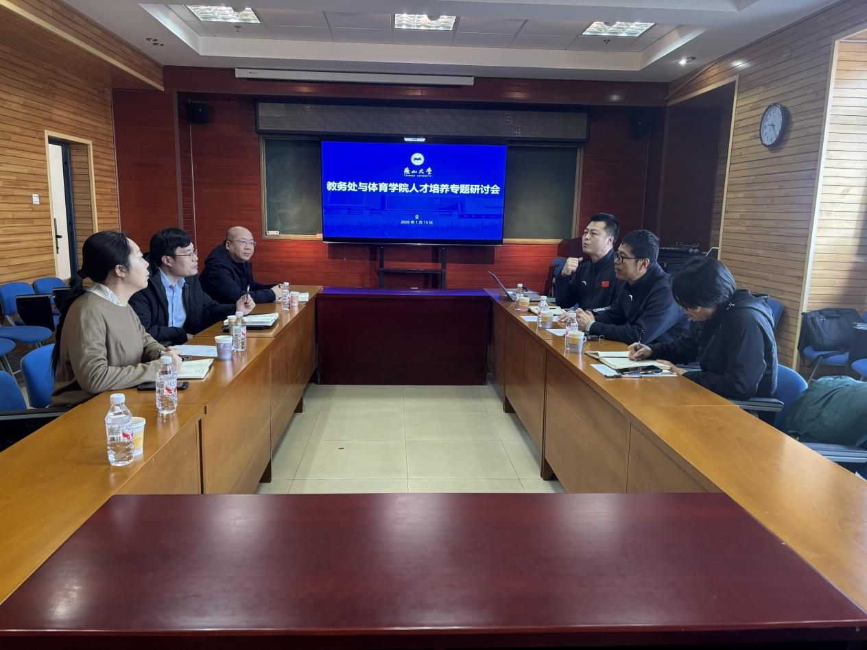 为深入贯彻体育强国战略,推动体教融合高质量发展,精准对接新时代人才培养需求,1月15日上午,教务处与体育学院召开体育专业人才培养专题研讨会。教务处处长姚建涛、副处长赵春梅、副处长靖鲲鹏,体育学院院长杨广辉、副院长林琴琴及系主任曹亮等参加会议。会议聚焦培养模式改革、课程体系优化与实践教学强化等关键议题,开展深入交流,进一步凝聚共识、明晰方向。