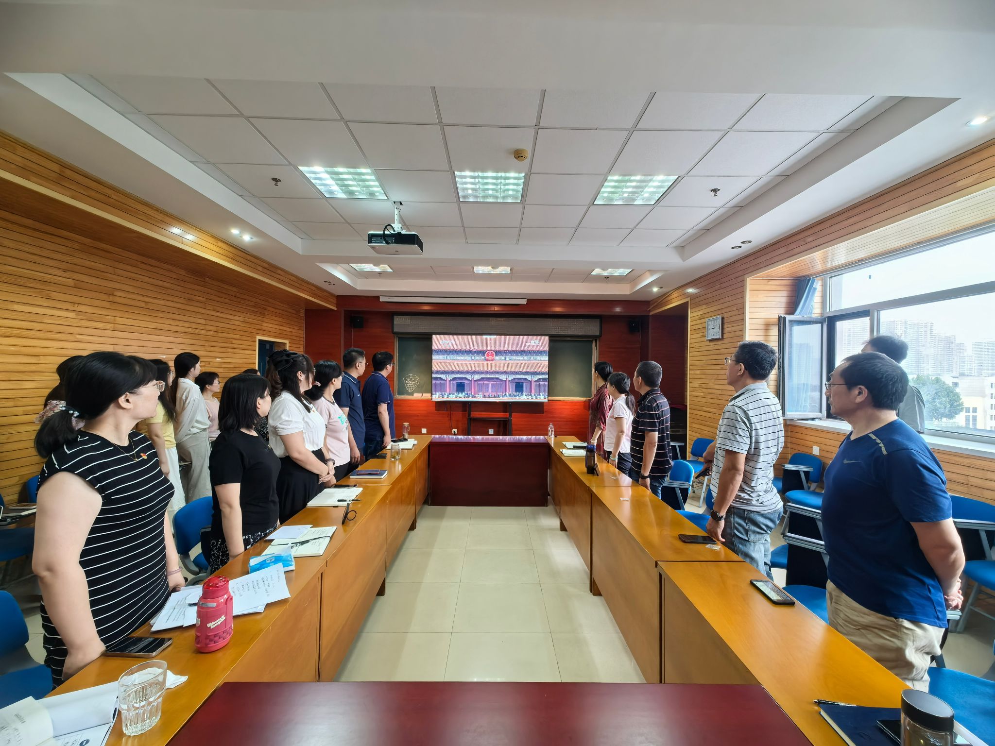 会议结束后,教务处全体教职工随即集中收听收看习近平总书记重要讲话与抗战胜利80 周年阅兵仪式。大家围坐于大屏幕前,神情专注、心潮澎湃,认真聆听习近平总书记的每一句嘱托。